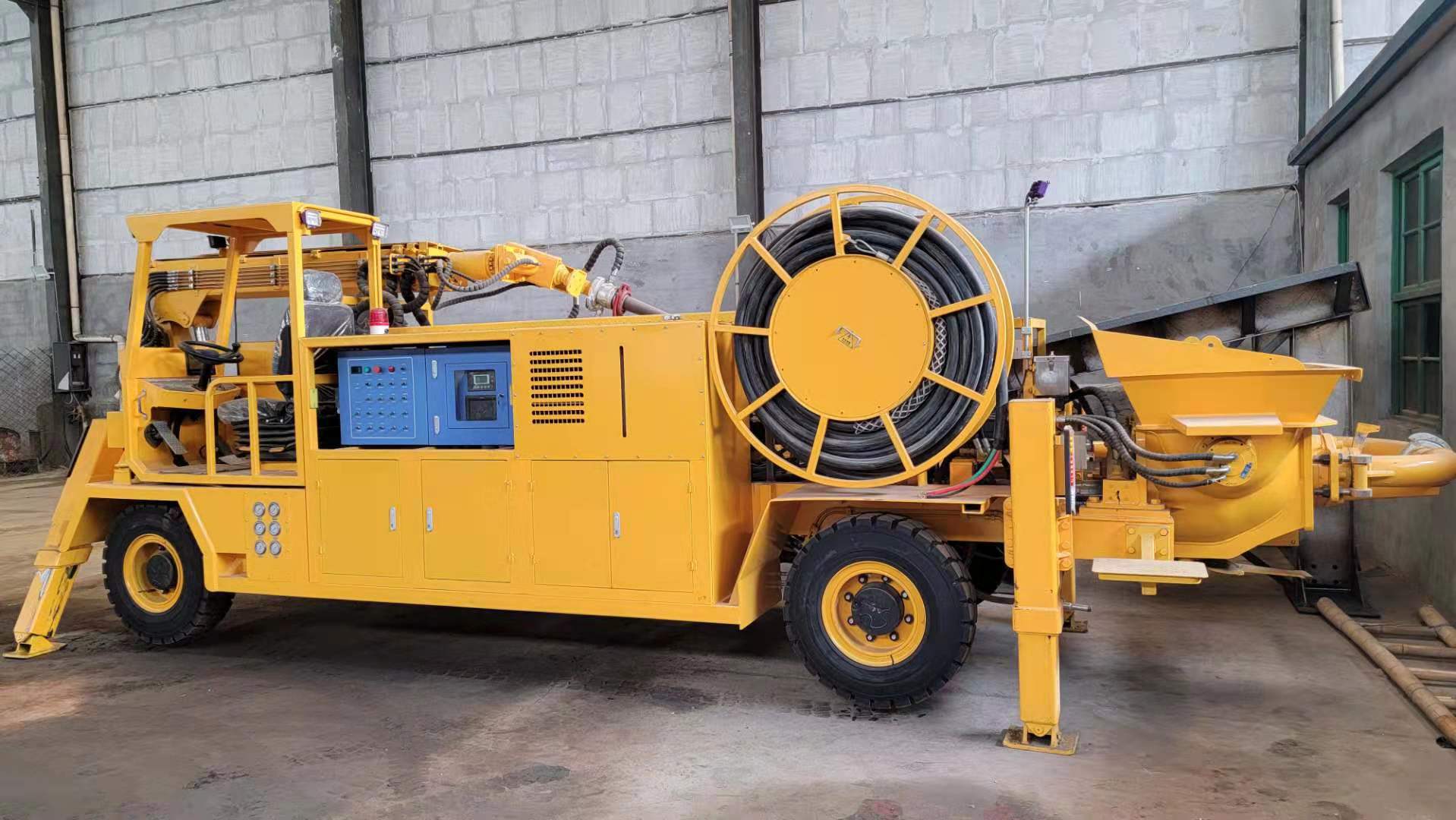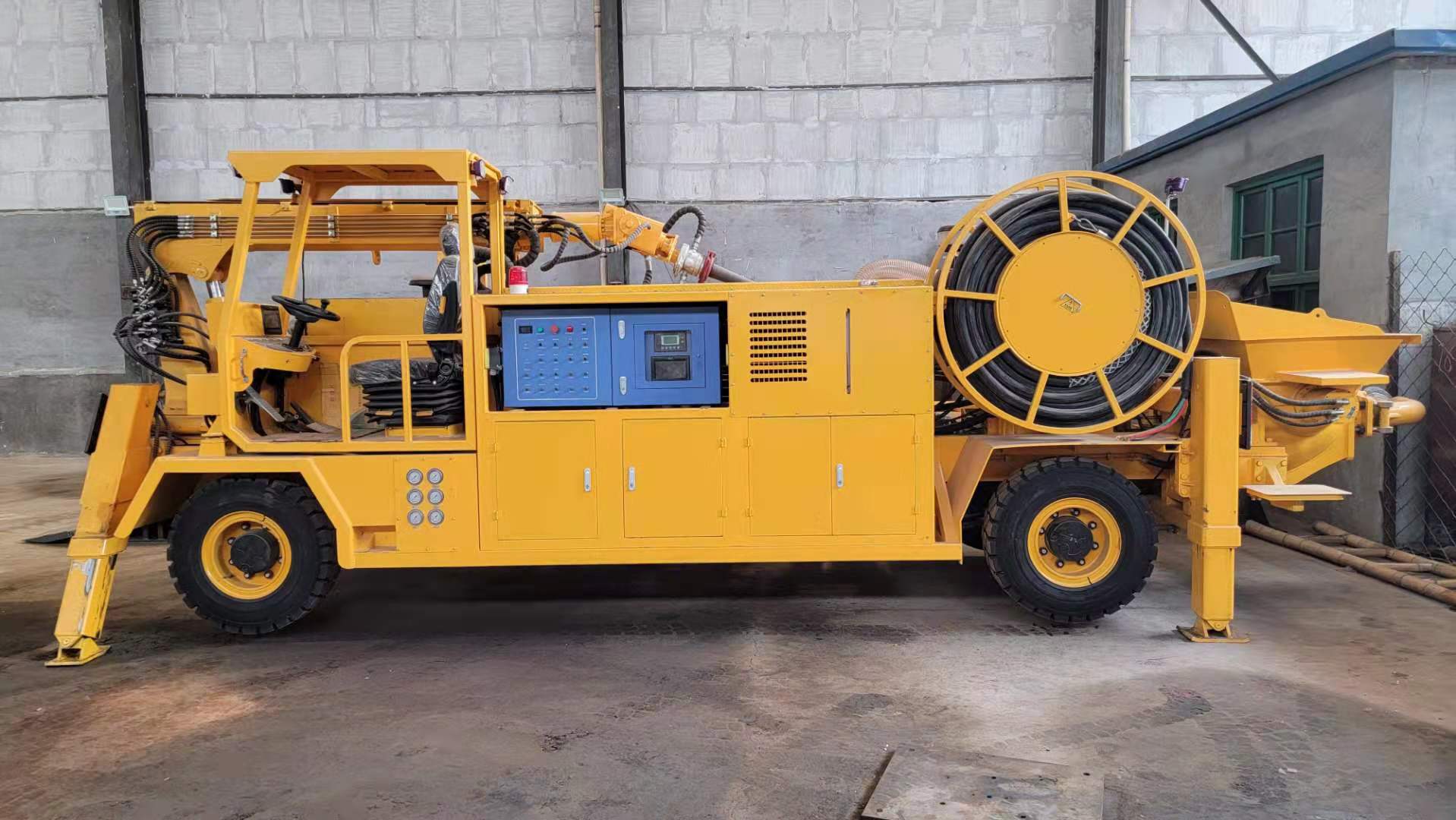 3) 速凝劑添加系統(tǒng)采用軟管泵,流量大、壽命長(zhǎng)、可靠性好。可根據(jù)需要調(diào)節(jié)比例,外加劑的摻量和混凝土泵送輸量均可通過(guò)工控屏或遙控器實(shí)時(shí)監(jiān)控和調(diào)節(jié)。