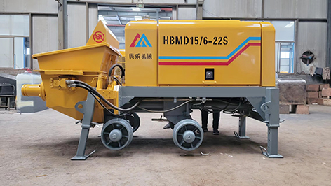 工作原理:當(dāng)液壓系統(tǒng)壓力油進(jìn)入一主油缸時(shí),活塞桿伸出,同時(shí)通過密封回路連通管的壓力油使另一活塞桿回縮。與主油缸活塞桿相連的混凝土輸送活塞回縮時(shí)在輸送缸內(nèi)產(chǎn)生自吸作用,料斗中的混凝土在大氣壓力作用和攪拌葉片的助推作用下通過滑閥吸入口被吸入輸送缸。同時(shí),另一主油缸在油壓的作用下,推動(dòng)主油缸的活塞桿伸出并同時(shí)推動(dòng)混凝土活塞壓出輸送缸中的混凝土,通過滑閥輸送口Y字管進(jìn)入混凝土輸送管。動(dòng)作完成后,系統(tǒng)自動(dòng)換向使壓力油進(jìn)入另一主油缸,完成另一次不同輸送缸的吸、送行程。如此反復(fù),料斗里的混凝土就被吸入和壓送出輸送缸,通過Y型管和出口連接的管道到達(dá)作業(yè)點(diǎn),完成泵送作業(yè)。
